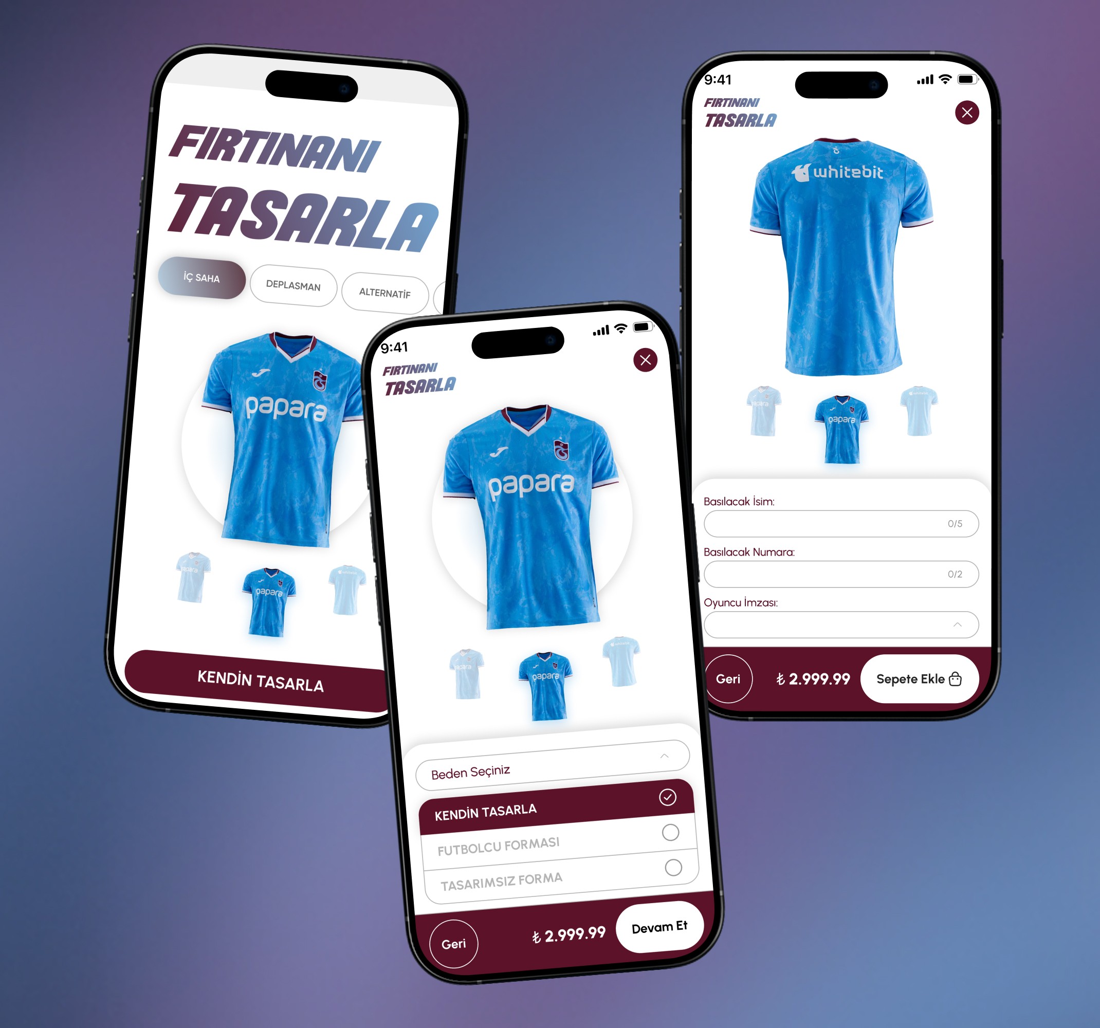 Our design principles were built upon a balanced approach that merges the emotional identity of Trabzonspor with the functional demands of a modern e-commerce system. We crafted a visual language that carries fan passion into the digital space while maintaining a clean and intuitive interface. Clear hierarchy and structured categories were introduced to accelerate product discovery, while mobile-first decisions ensured quick access, large touch targets, single-hand usability, and step-based customization flows.