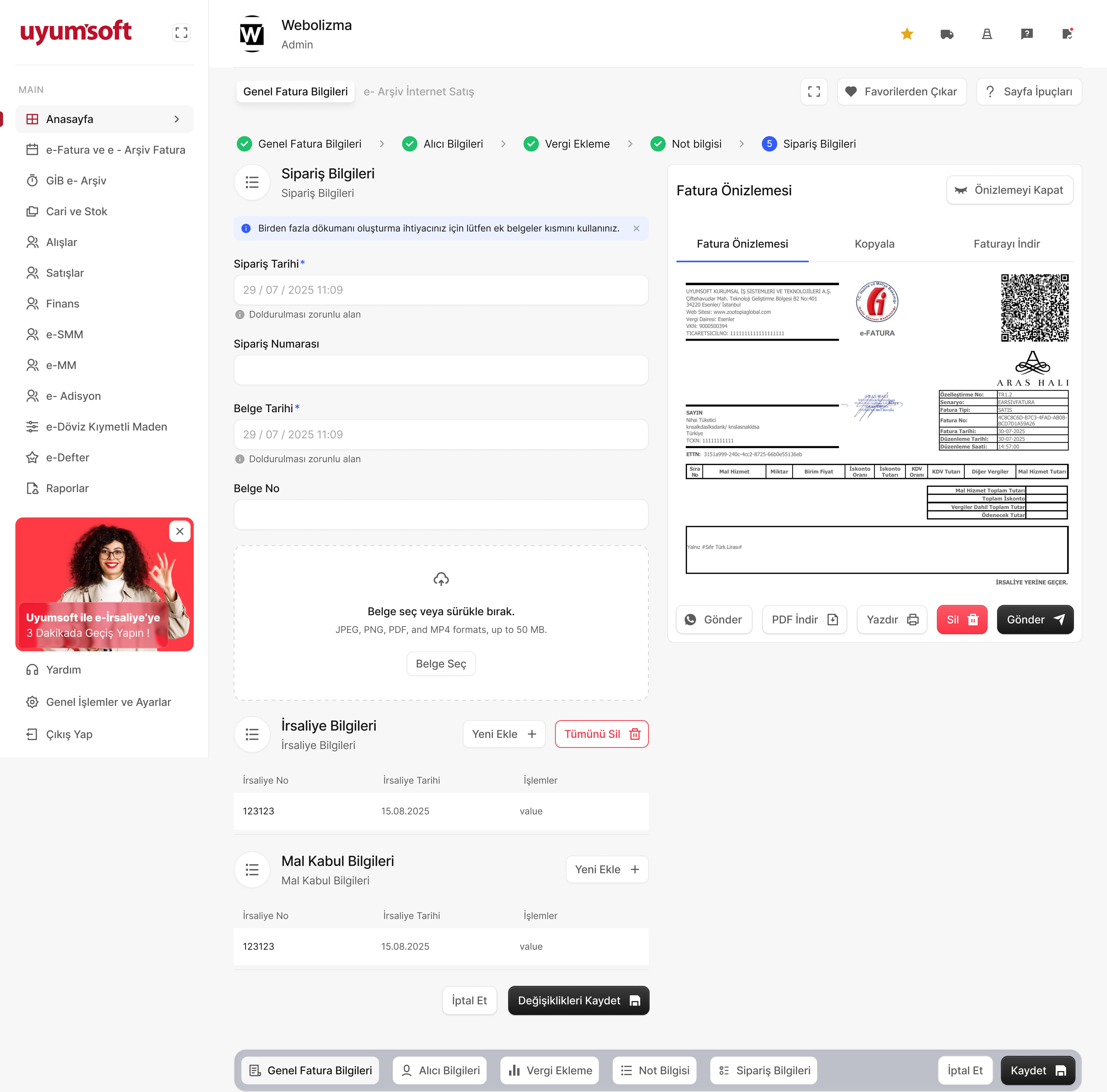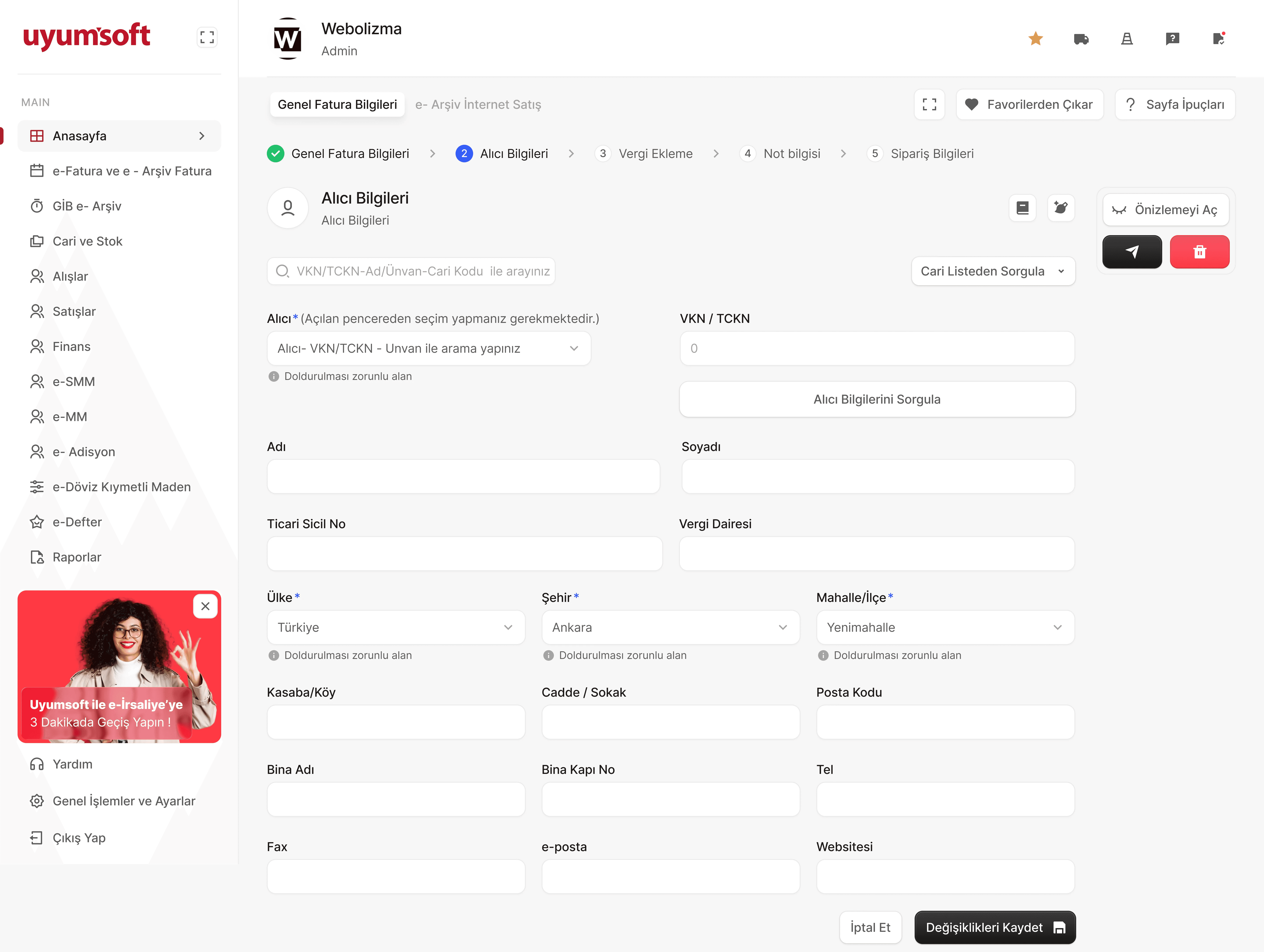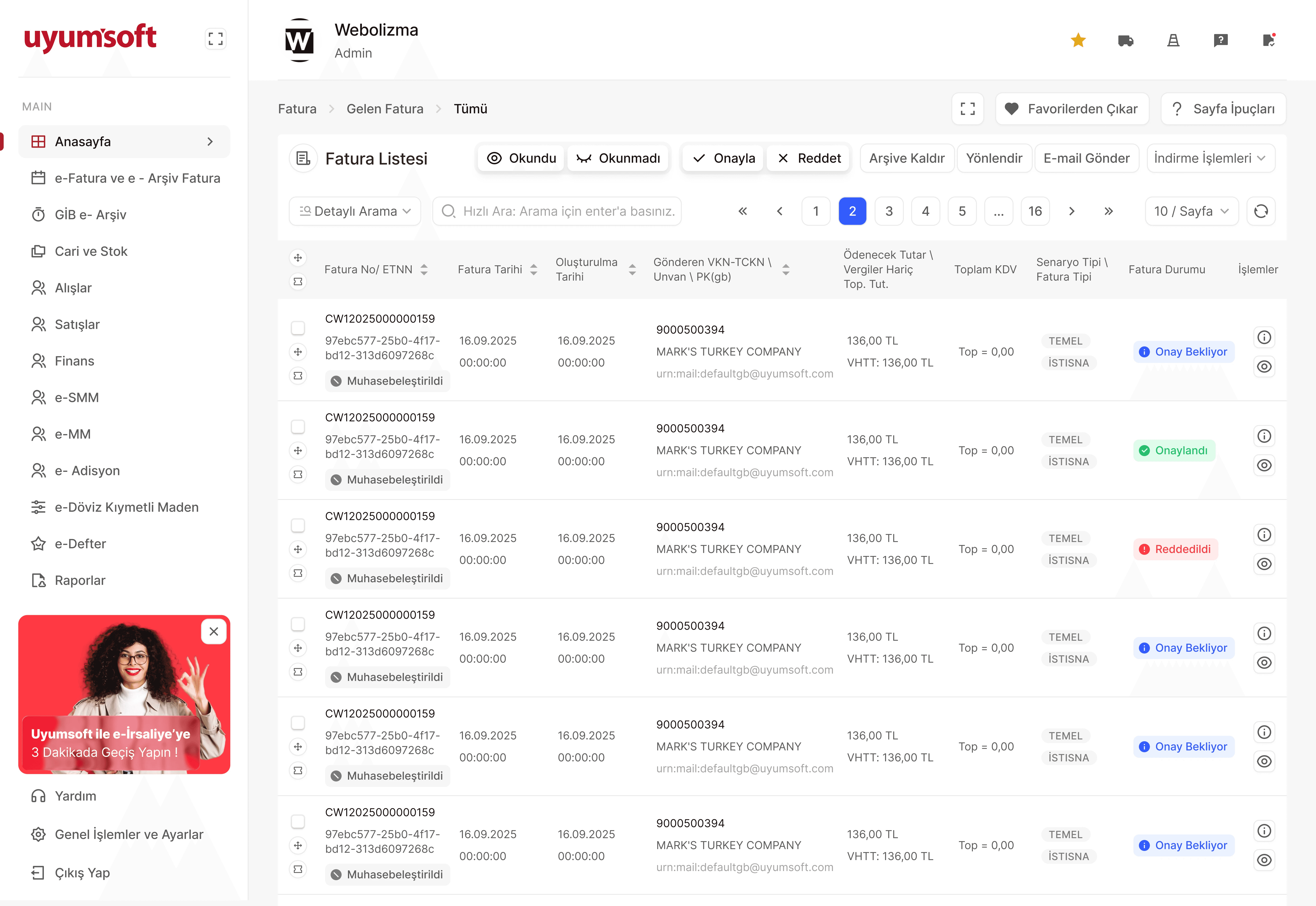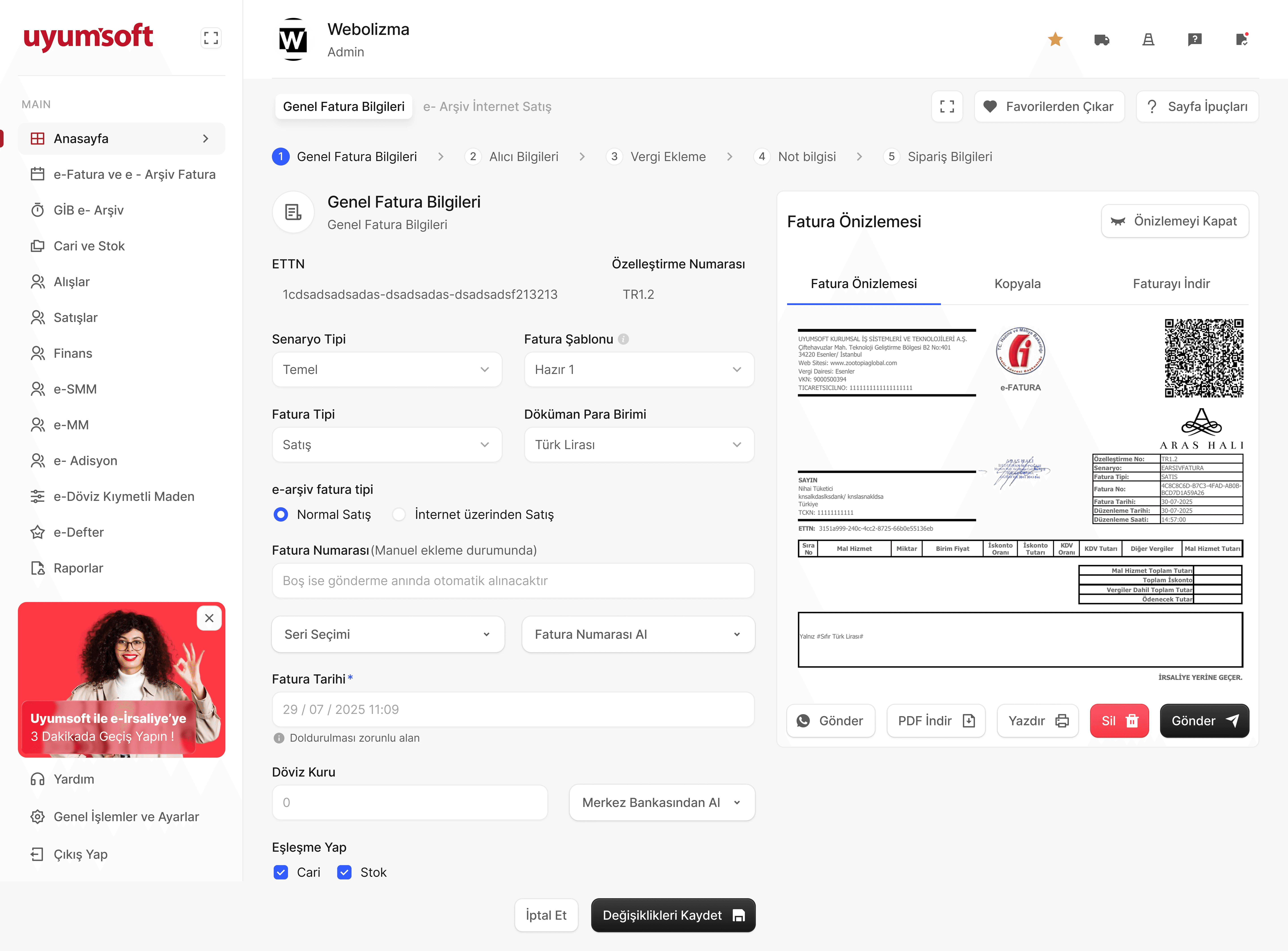 In the Uyumsoft dashboard project, we simplified complex data structures and designed a modern interface to facilitate users' daily operations.