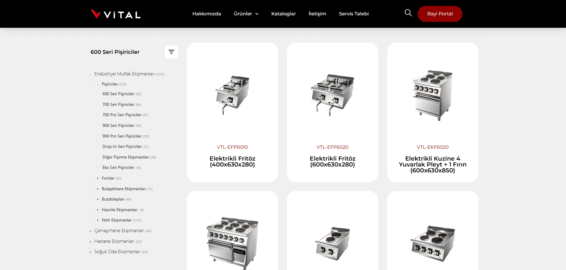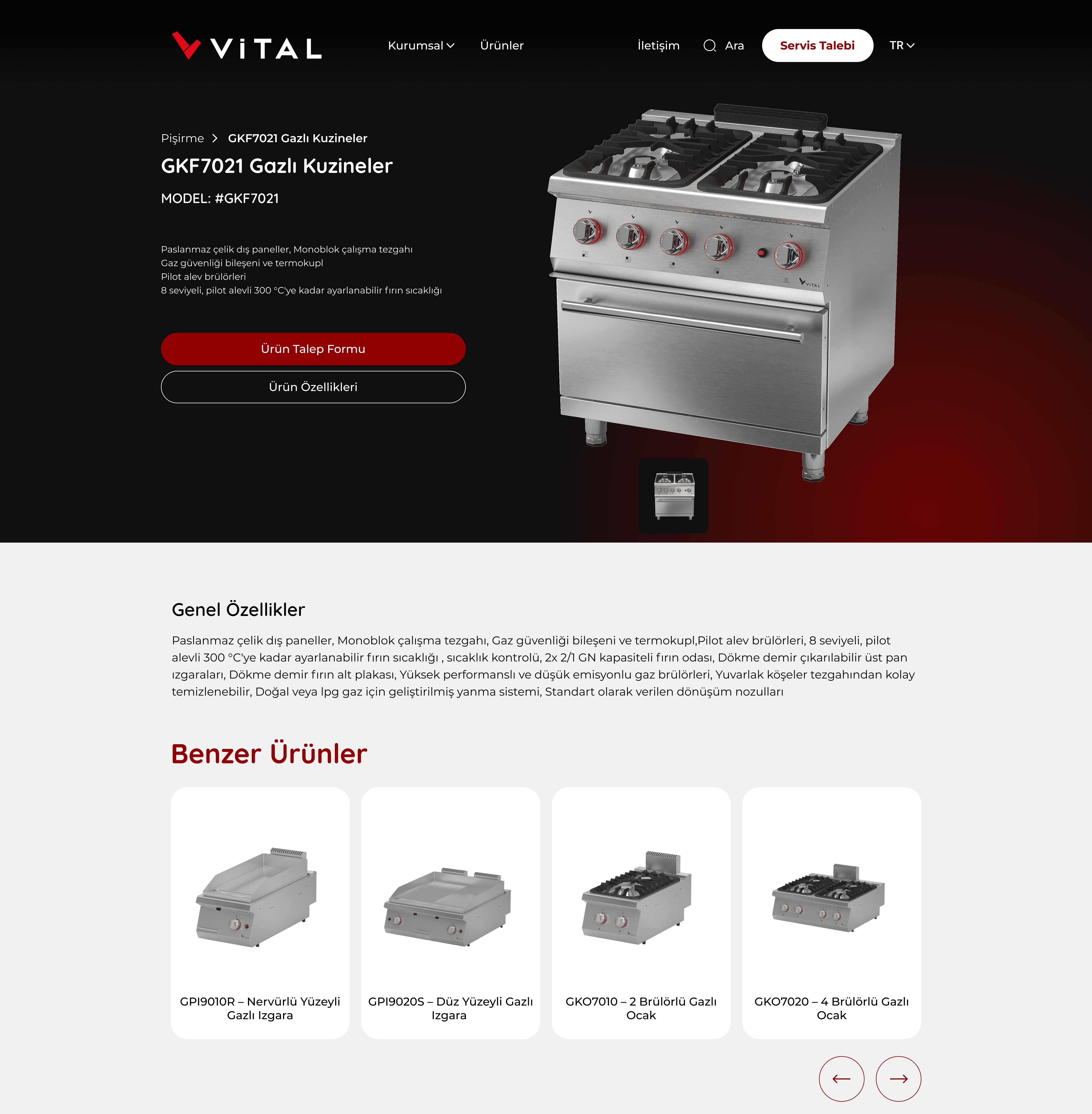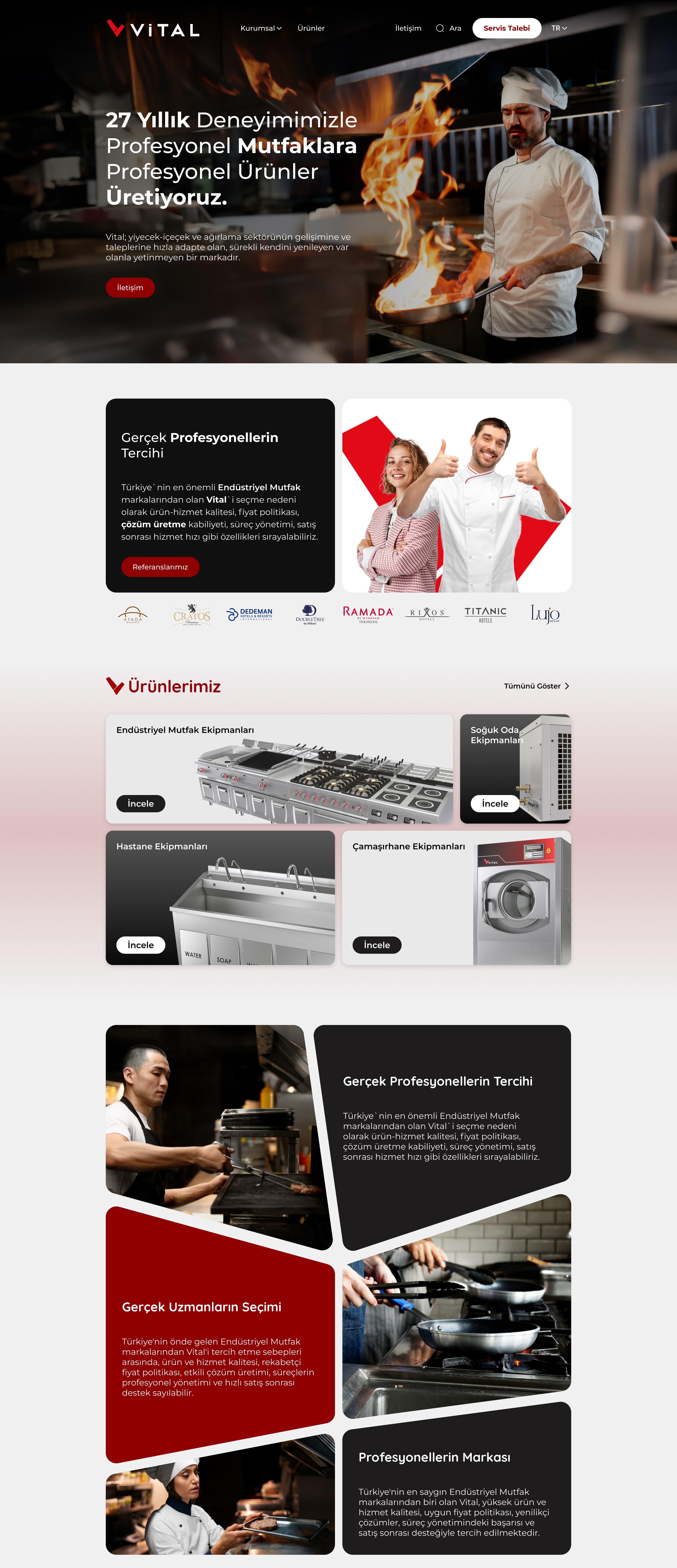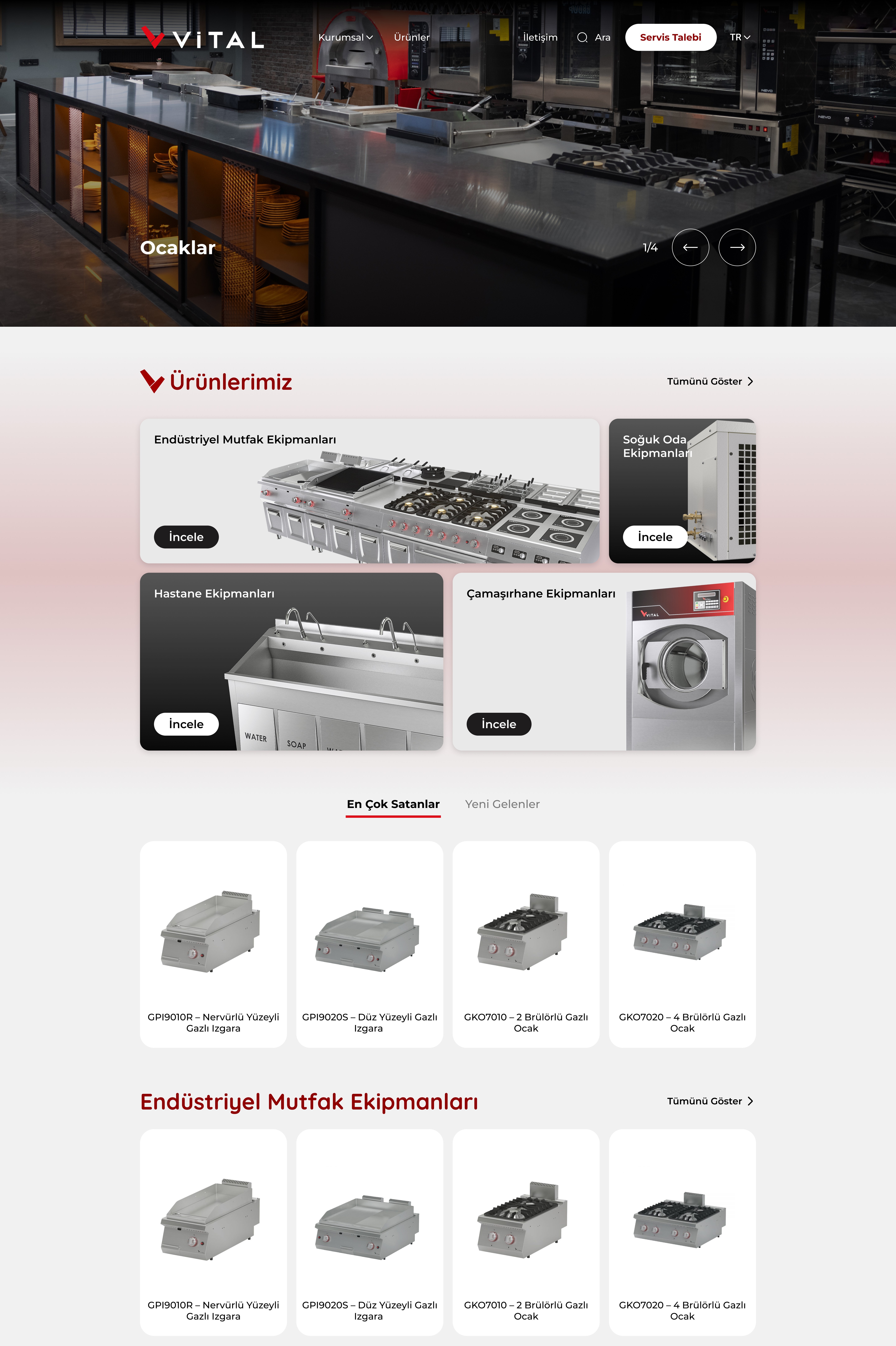 Vital Mutfak is an established industrial kitchen equipment manufacturer serving major hotel and restaurant chains. The project aimed to create a dual-purpose web platform: one that enables customers to explore products effortlessly, and another that communicates the brand’s long-term expertise and reputation.
